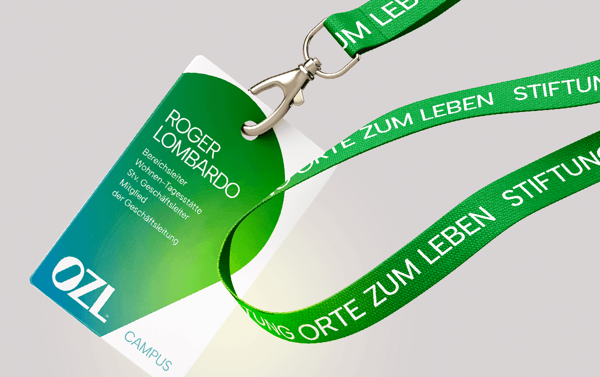OZL (Stiftung Orte zum Leben) is based in Lenzburg, Switzerland. The organization supports people with disabilities in everyday life, including housing, daily routines, and work. The identity is built around a wordmark, where the O contains a special inner shape that suggests change, support, and a better quality of life.